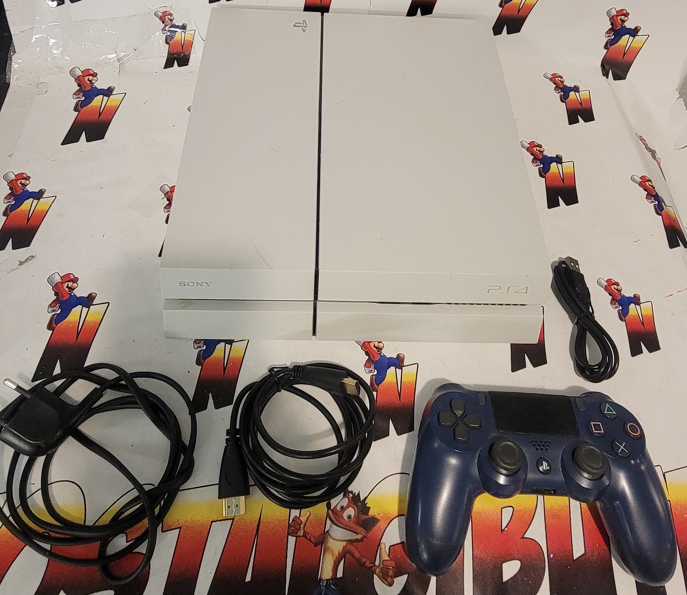 Med hdmi kabel, strömsladd, handkontroll, laddkabel. Testad.